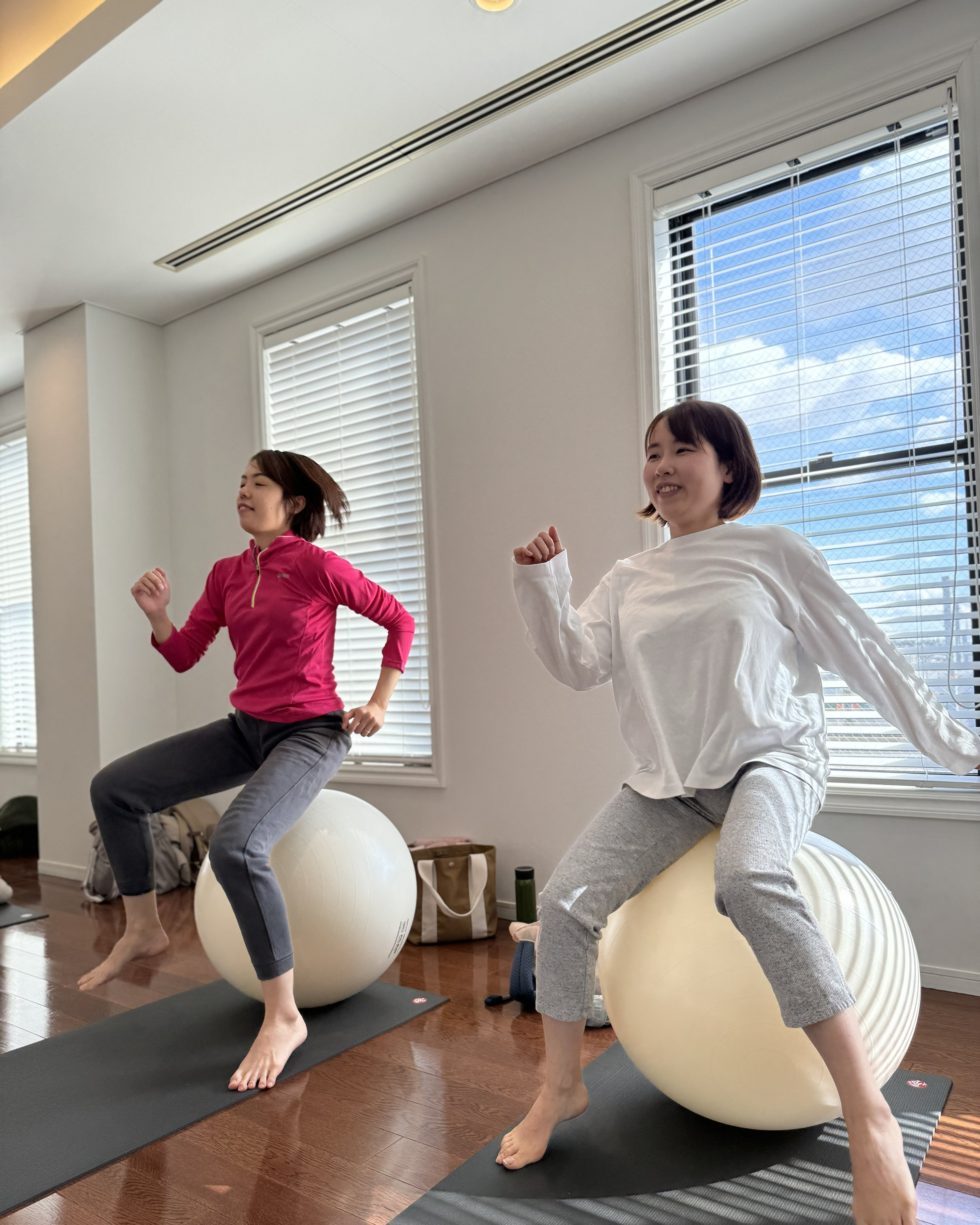 リハビリからうまれたバランスボールを使い正しい姿勢でリズミカルに有酸素運動をします。ヨガのメソッドを取り入れたストレッチとの組み合わせにより体をリラックスに導き、バランスボールの有酸素運動を通じて心も体も内側からしっかり整えていきましょう。